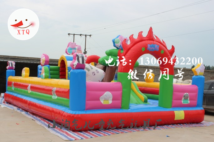充氣城堡采用一等環保夾網pvc為產品原材料進行產品生產,此材料為專 業的充氣布,耐寒性能好,可達到零下40度低溫;阻燃性能好,離明火5秒鐘內自熄,通過技術監督局檢測結果顯示,無毒、無味、無刺激性,對皮膚不會引起過敏反應,尤其是小孩子。